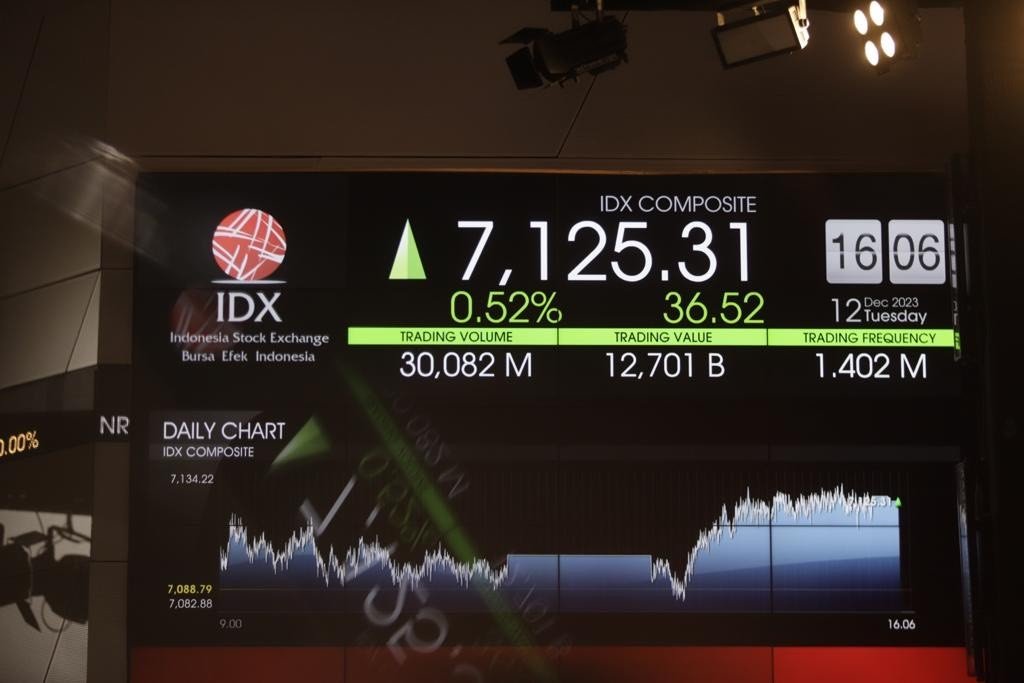 Pada perdagangan Selasa (23/12), IHSG ditutup melemah 61,06 poin atau 0,71 persen ke level 8.584. Berdasarkan data RTI Infokom, total nilai transaksi mencapai Rp24,45 triliun dengan volume perdagangan sebanyak 41,48 miliar saham.