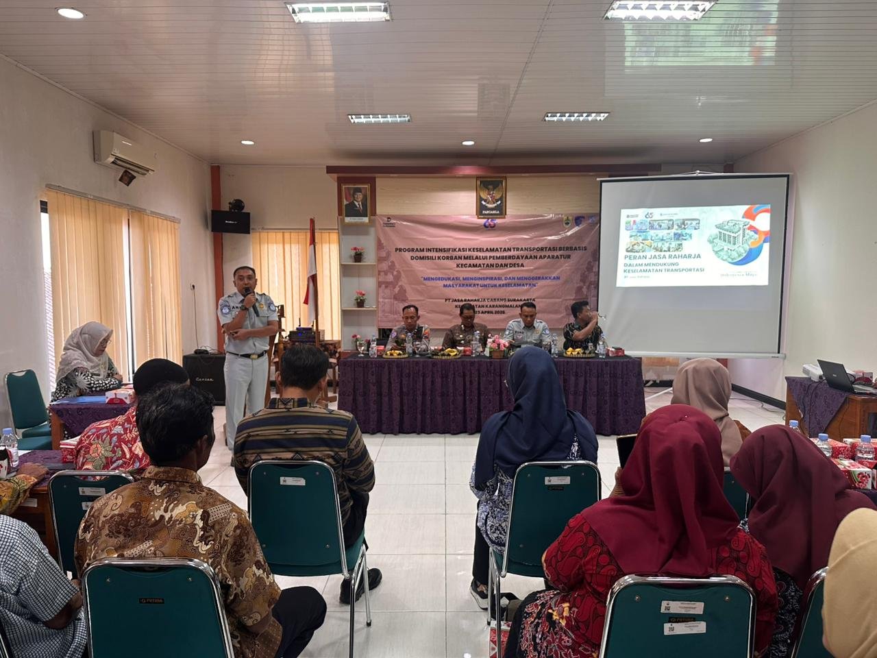Sragen – Dalam rangka membangun budaya tertib berlalu lintas serta menekan angka kecelakaan di wilayah Kabupaten Sragen, PT Jasa Raharja Cabang Surakarta menggelar Kampanye Keselamatan Transportasi di Kecamatan Karangmalang pada Kamis, 23 April 2026. Kegiatan ini bertujuan untuk meningkatkan kesadaran masyarakat terhadap pentingnya keselamatan berkendara sekaligus memperkuat peran aparatur wilayah dalam mengedukasi masyarakat secara berkelanjutan.