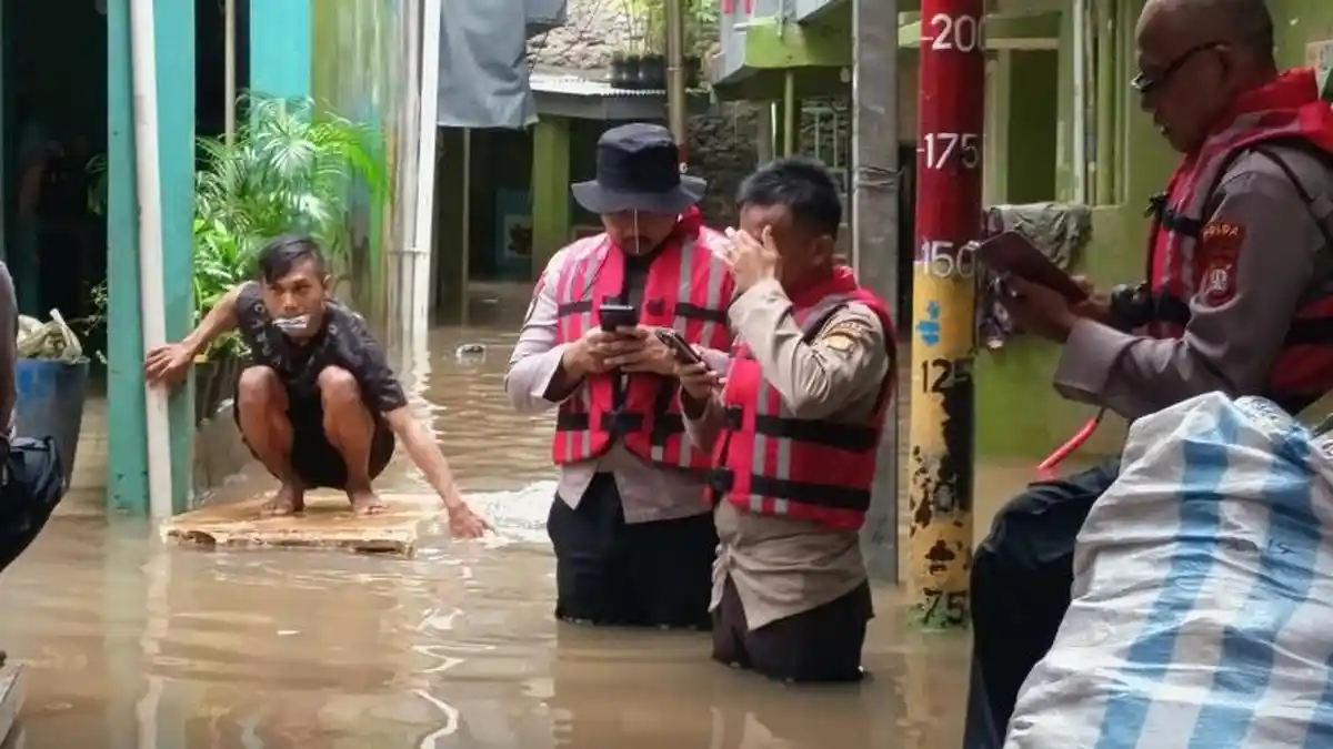 Petugas dari PPSU, Badan Penanggulangan Bencana Daerah, serta aparat setempat bersiaga di lokasi untuk memantau kondisi dan membantu proses evakuasi. Beberapa perahu karet dikerahkan guna membantu mobilitas warga di area yang masih tergenang cukup dalam.