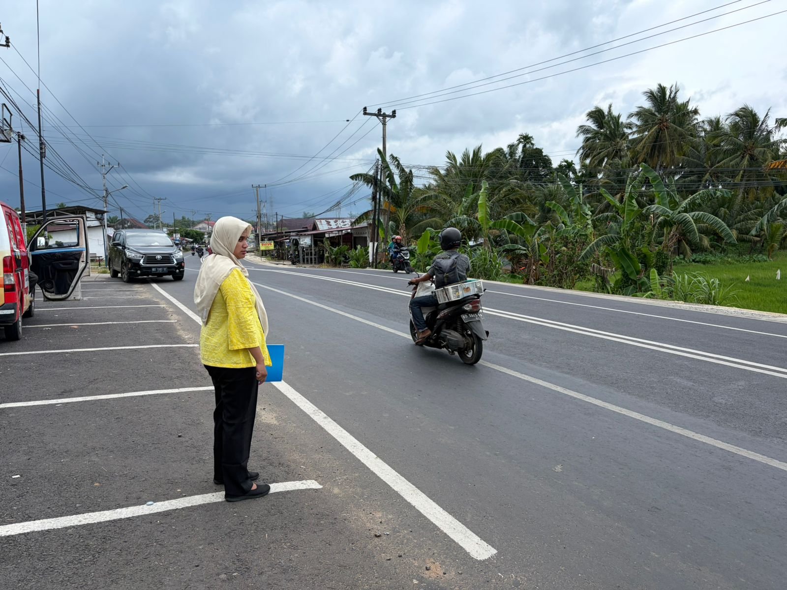 Petugas Jasa Raharja Samsat Serpong Satya Wardhani dan Indah Hayati pada hari Senin 20 April 2026 mensosialisasikan program apresiasi bagi masyarakat taat pajak dengan membagikan flyer yang berisi informasi cara mudah bayar pajak kendaraan bermotor serta berbagai hadiah menarik yang akan diberikan kepada masyarakat di kawasan Serpong Tangerang Selatan.