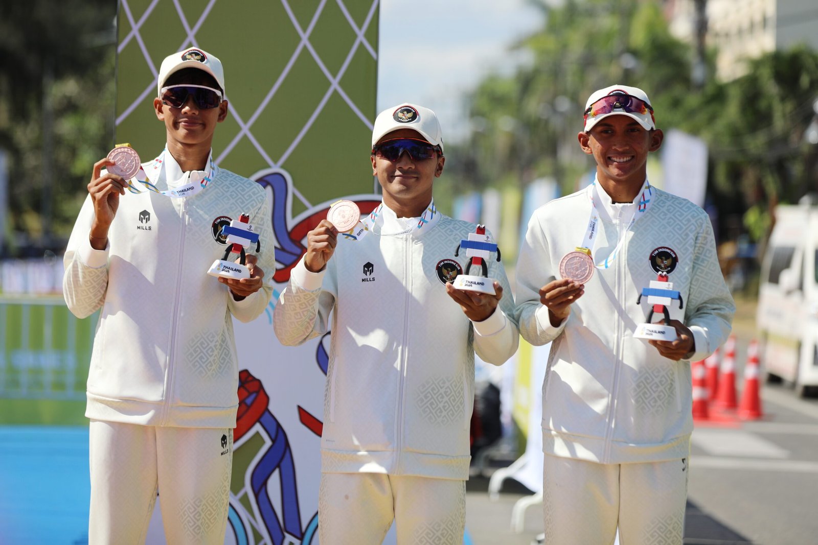 Kontingen Indonesia kembali menambah pundi-pundi medali emas pada SEA Games 2025 Thailand setelah Eva Desiana, Zahra Bulan Aprilia Putri, dan Martina Ayu Pratiwi keluar sebagai juara pada nomor duathlon estafet putri, Kamis (18/12) pagi. Tambahan emas ini membuat total perolehan medali emas Indonesia meningkat menjadi 73.