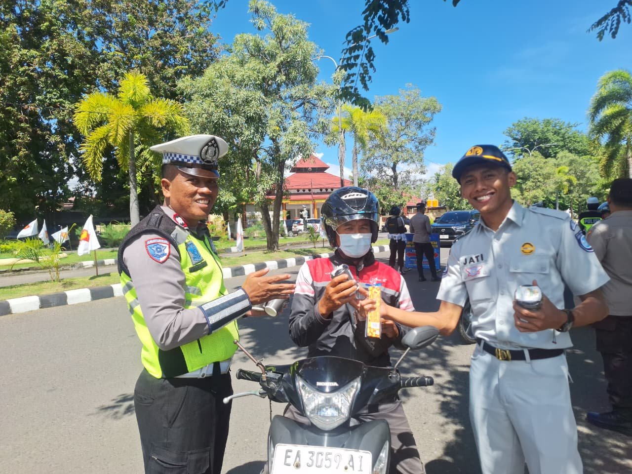 Aksi simpatik juga menjadi bagian dari rangkaian kegiatan, di mana petugas membagikan souvenir dan himbauan keselamatan kepada pengguna jalan. Pendekatan ini diharapkan mampu meningkatkan kesadaran masyarakat tanpa menimbulkan rasa takut, sehingga pesan keselamatan dapat diterima dengan baik.